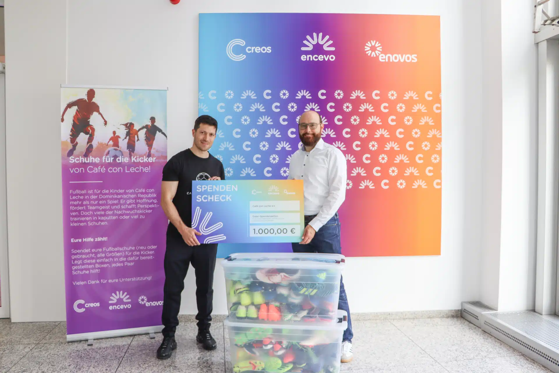 Auch in diesem Jahr war die Oster-Spendenaktion von Encevo Deutschland ein großer Erfolg: Gemeinsam mit vielen engagierten Mitarbeitenden wurden zahlreiche Fußballschuhe für den Verein Café con Leche in der Dominikanischen Republik gesammelt. Zusätzlich übergab Encevo eine Spende in Höhe von 1.000 Euro an den Verein.
